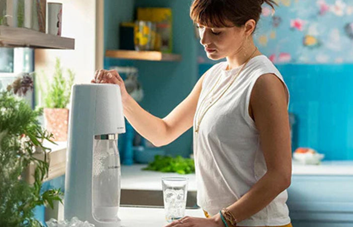 Most sparkling water appliances are user-friendly and require minimal work. SodaStream home appliances like Terra and E-Terra, for example, have just a two-step process. Just plug in the water container and press the fizz button to enjoy your fresh, bubbly sparkling water.