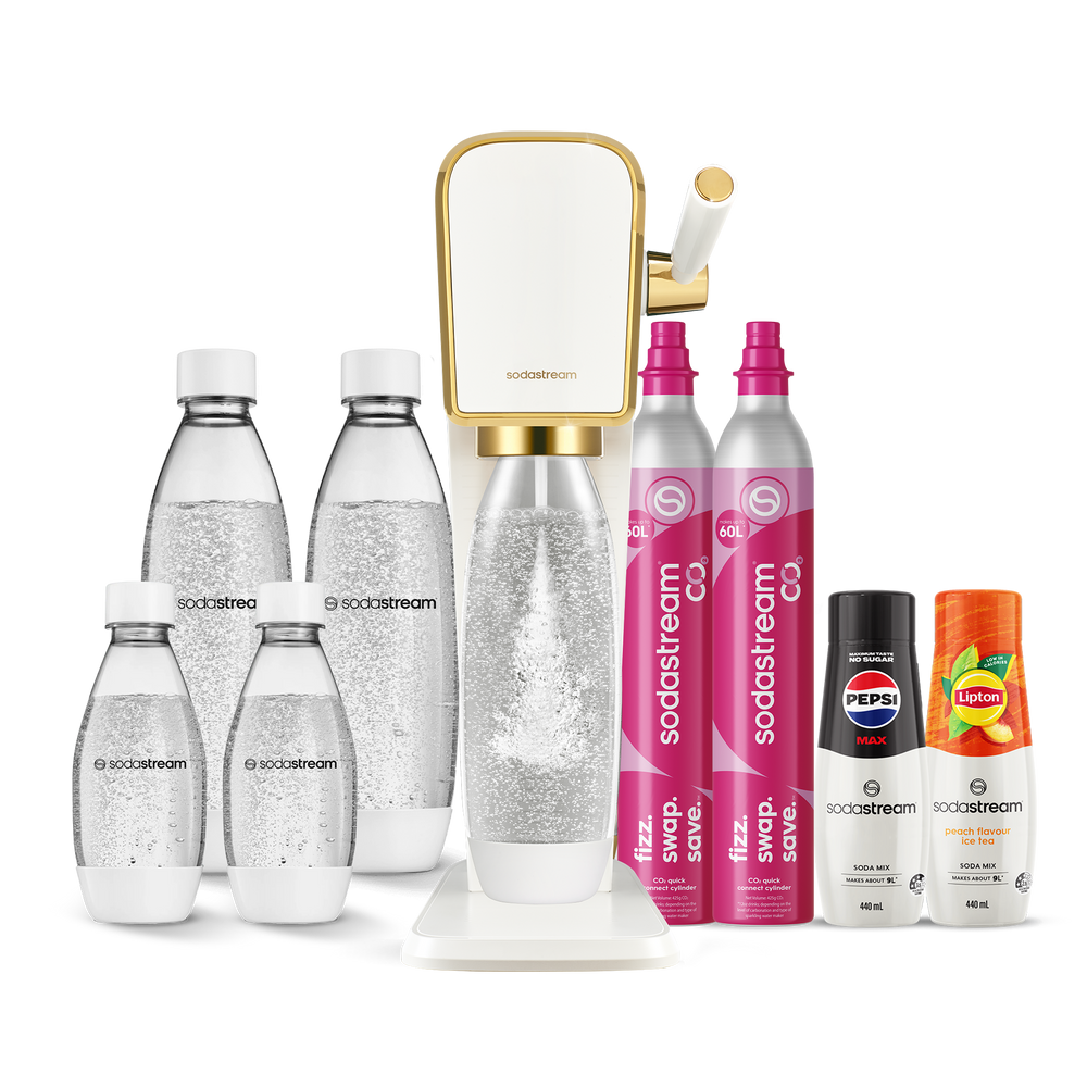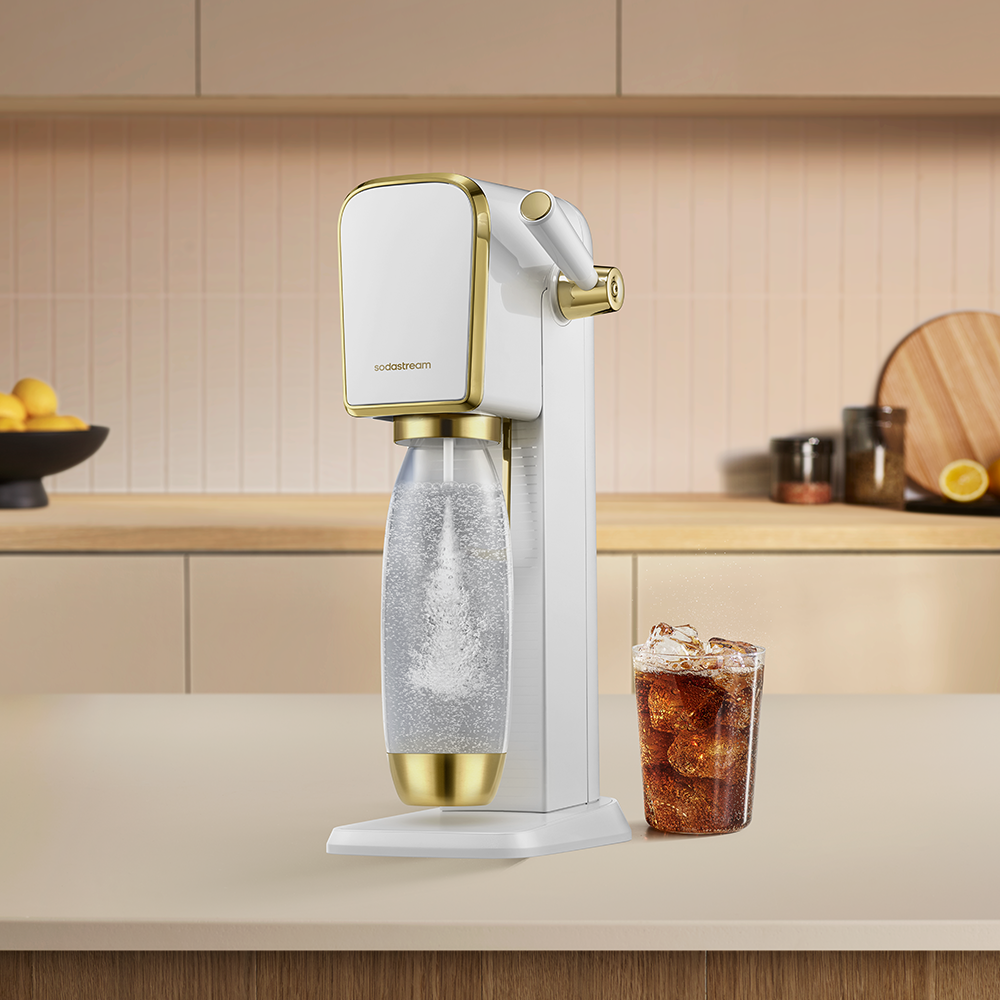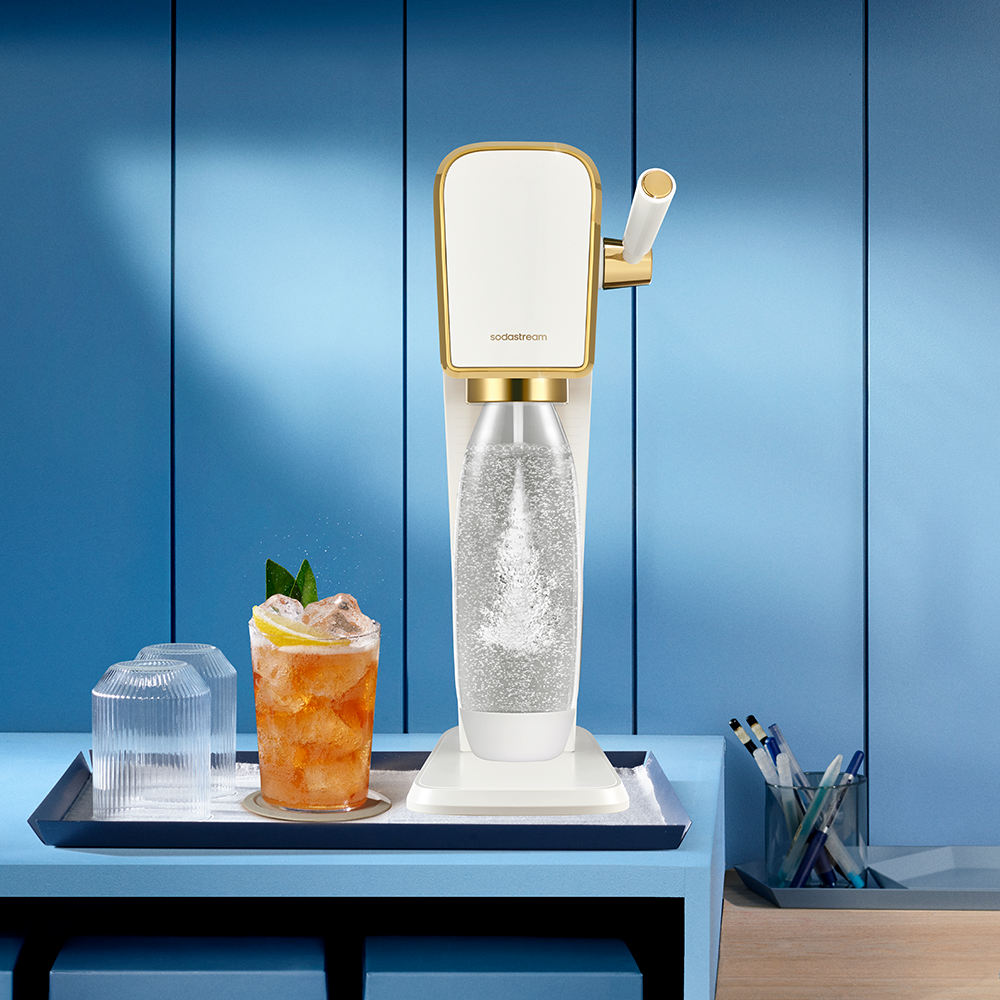 The SodaStream Art Gold Special Edition Sparkling Water Maker celebrates the art of making your own fresh sparkling beverages at home.