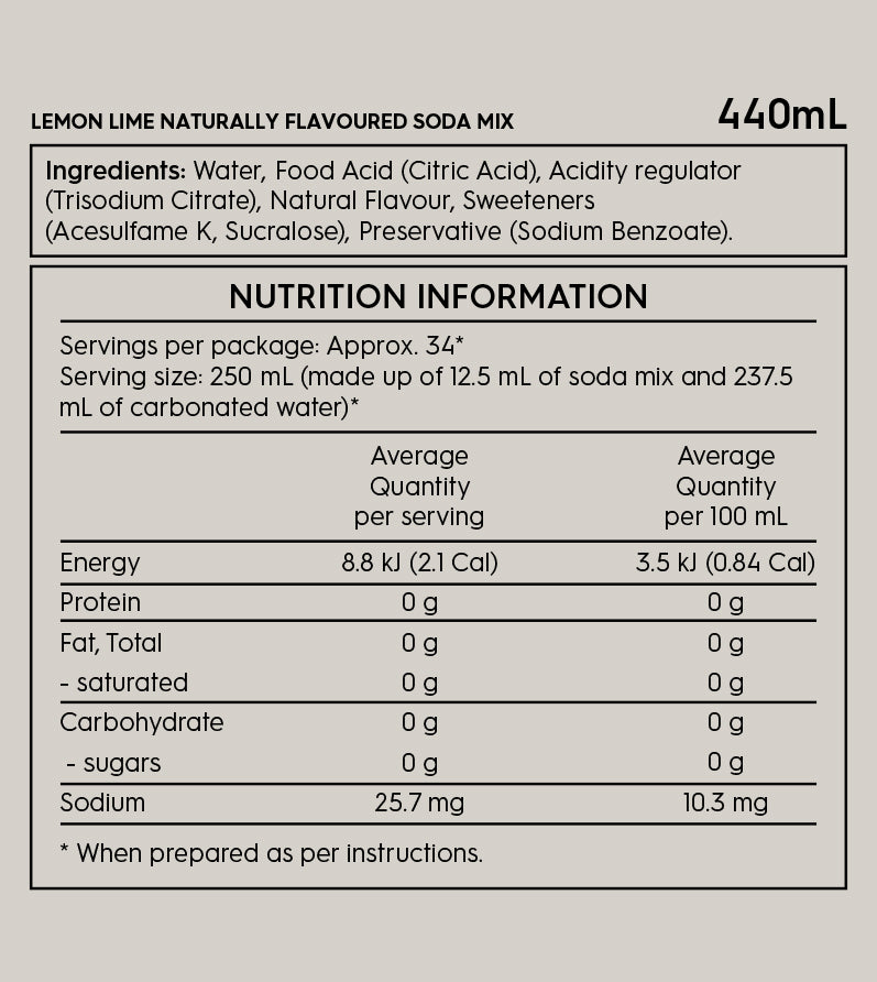 Now you can make your favorite Zero Calorie, Zero Sugar, flavours at home with SodaStream Classics Diet Lemon Lime soda drink mix. With zero calories, sugar free and deliciously fruity flavor, you can stay hydrated all day long with the SodaStream Diet Lemon Lime flavour syrup. Simply add this drink mix to fresh sparkling water to personalize your fruity experience.
