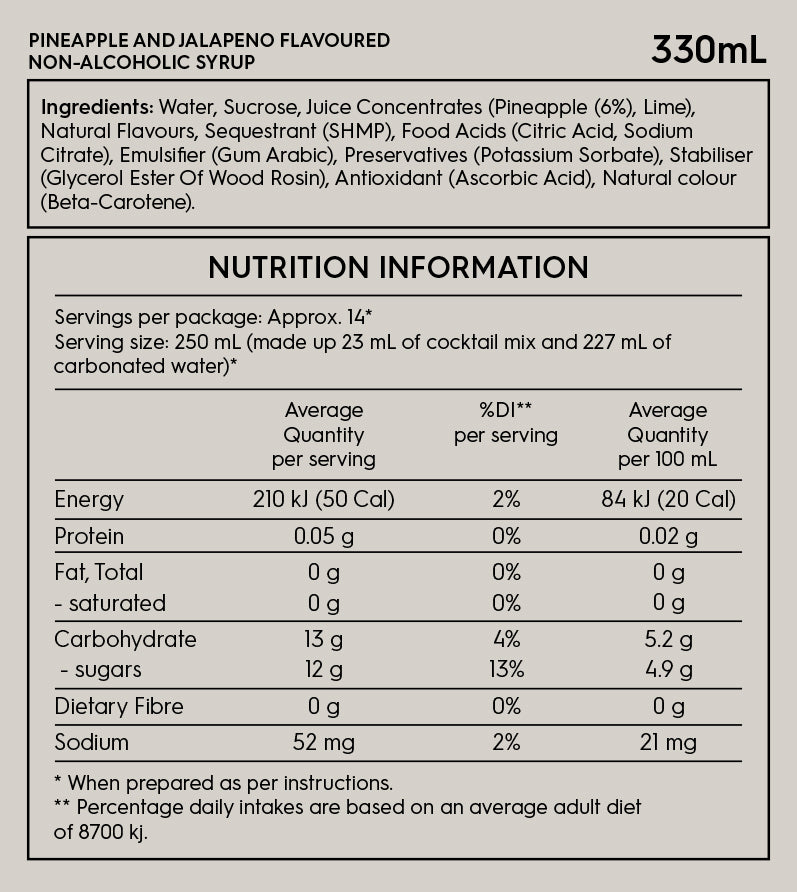 If you’re looking to enjoy the Pineapple & Jalapeno flavor with a twist, add tequila or any spirit of your choosing, 2-3 slices of jalapeno and a slice of pineapple. Drink responsibly.