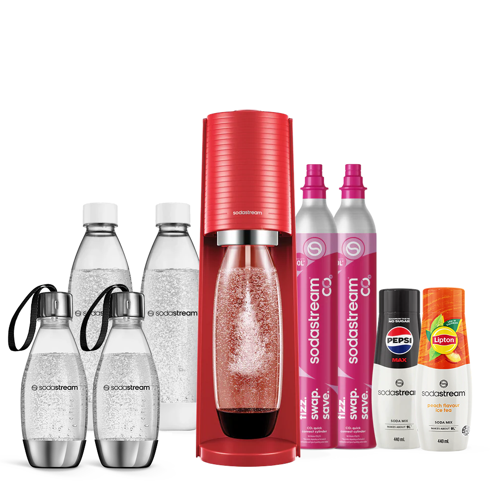 SodaStream Terra colour options: Black, White, Red & Misty Blue.
